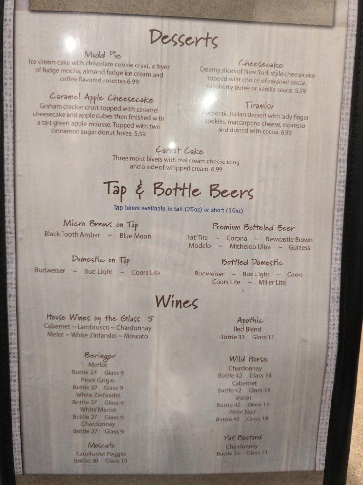 Burgers such as the Aloha Burger and Black & Blue Burger receive rave reviews. Seafood lovers enjoy options like Fish-N-Chips and the Seafood Buffet, available on select evenings.